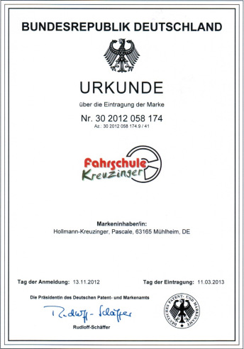 Fahrschule Kreuzinger ist ein eingetragenes Markenzeichen: